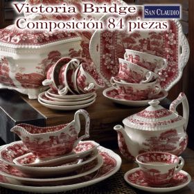 La vajilla de San Claudio Victoria Bridge nos recuerda la vajilla típica inglesa, decorada en tonos rojizos tierra y con diseños típicos de la Campiña Inglesa. Apta para lavavajillas y microondas, su uso puede ser diario.
